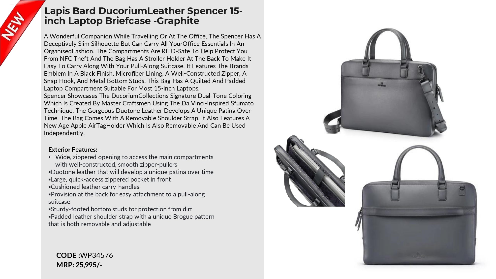 Lapis Bard DucoriumLeather Spencer 15inch Laptop Briefcase -Graphite
