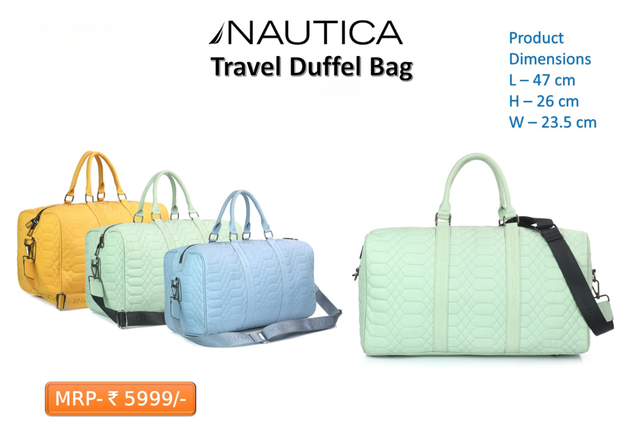 This is a durable and versatile Nautica travel duffel bag , available in your choice of 3 colors. Its spacious design and high-quality construction make it the perfect companion for all your travels. Stay organized and stylish on the go with this bag.